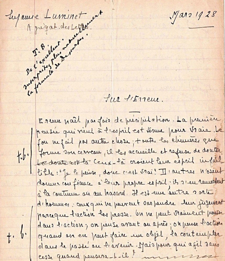 Le fonds Alain est composé de mobilier, de livres, de correspondance adressée à Alain, de copies corrigées par lui, de manuscrits d'ouvrages, de plus de 330 Propos